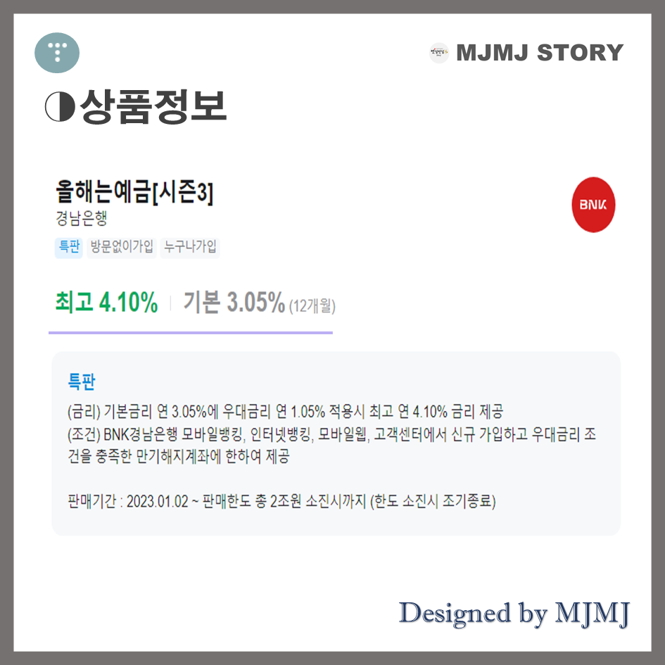 BNK경남은행 올해는예금[시즌3] 금리 및 가입방법